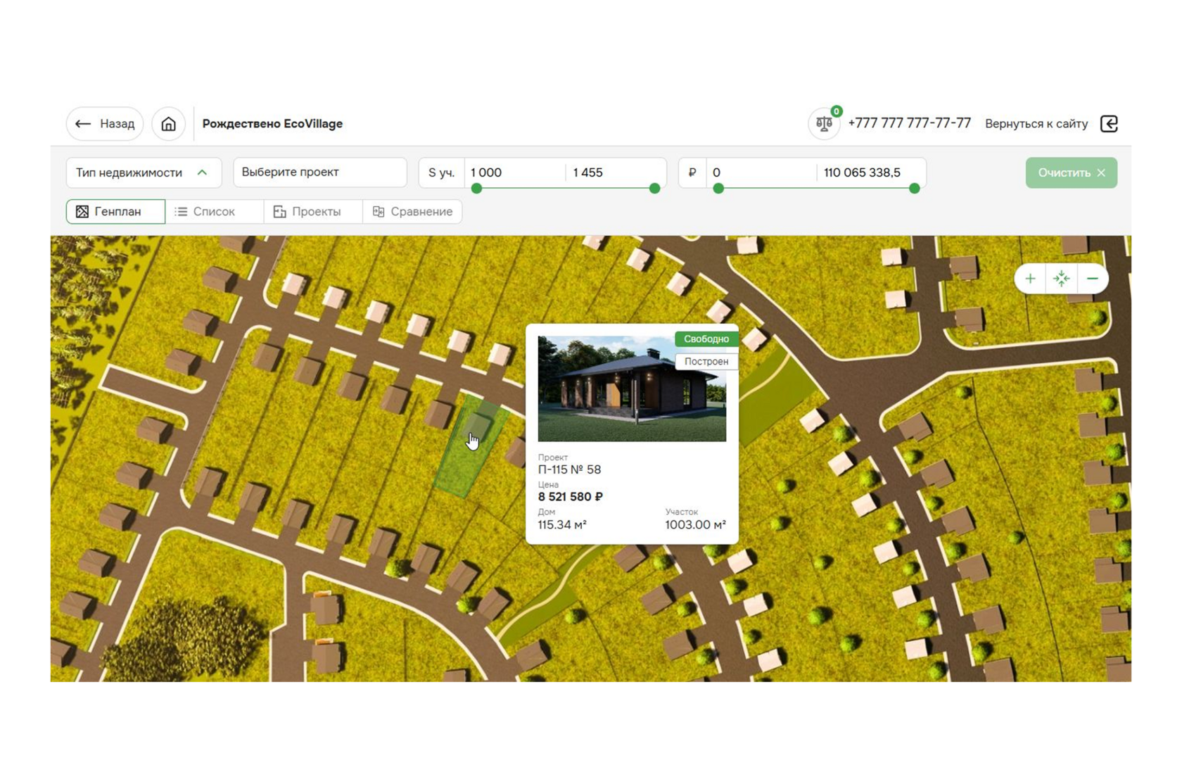 Интерактивный генплан + библиотека проектов.