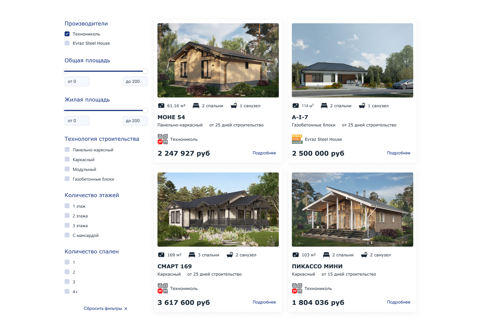 Каталог домов уже включает решения от Технониколь, Евраз и других лидеров рынка